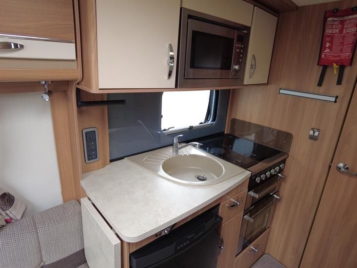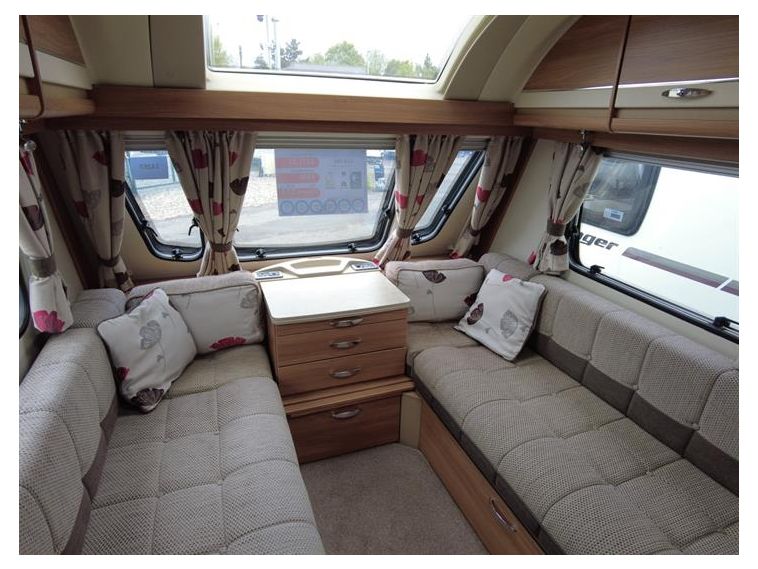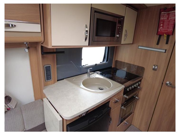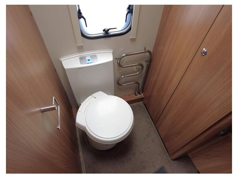 It has an end washroom with cassette toilet, wash basin and a separate shower. There is also a large wardrobe and a heated towel rail.