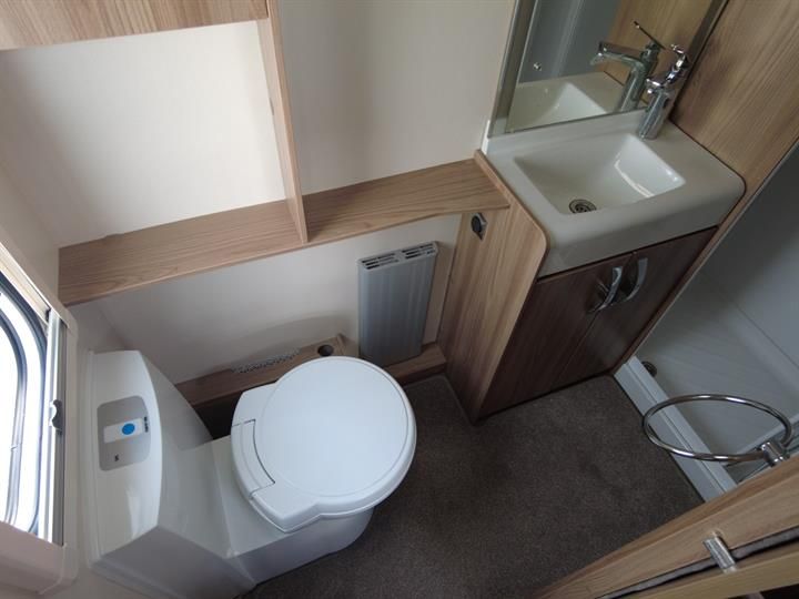 The bedroom area features a transverse island bed with a memory foam mattress atop. There are hers and his wardrobes either side of the bed with overhead storage lockers and space beneath ensuring you can take all of your essentials away with you on your travels.