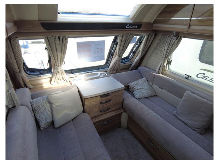 Here we have a 2017 Swift Celeste 580SE, a spacious caravan with a motormover fitted and both external electric and gas BBQ points included.