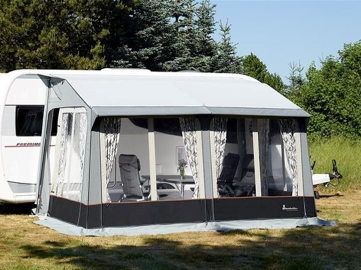 The Universal 420 features a special sloping roof construction which ensures a minimal build up of snow whilst also providing an unobstructed opening of the caravan door. The optional Isabella Annex 220 can be attached to this caravan porch awning, creating some additional space for storage or sleeping guests.